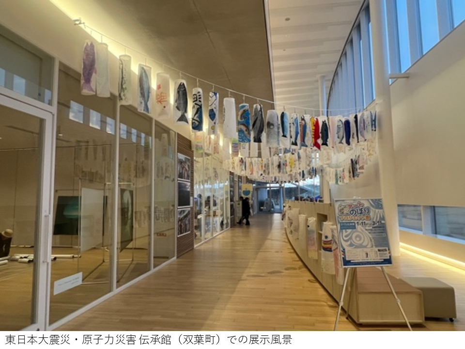 東日本大震災・原子力災害 伝承館(双葉町)にて、鮭をテーマとした「アートのぼり」のワークショップと掲揚。