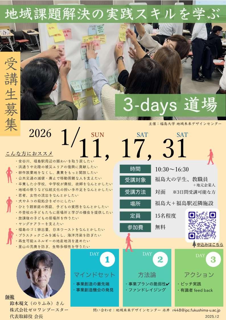 1/11,17,31「地域課題解決スキルを学ぶ 3-days 道場」を開講します