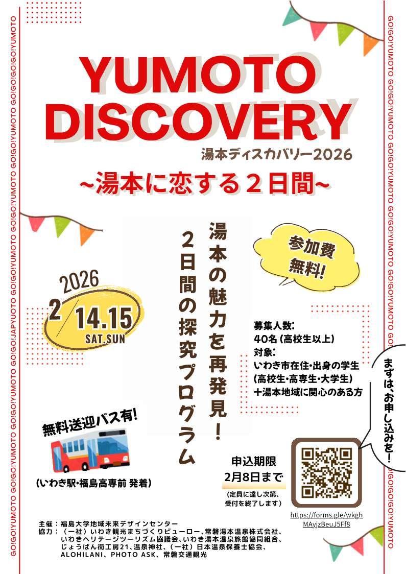 YUMOTO DISCOVERY 湯本ディスカバリー2026 ~湯本に恋する2日間~参加者募集(2月8日申込〆切)