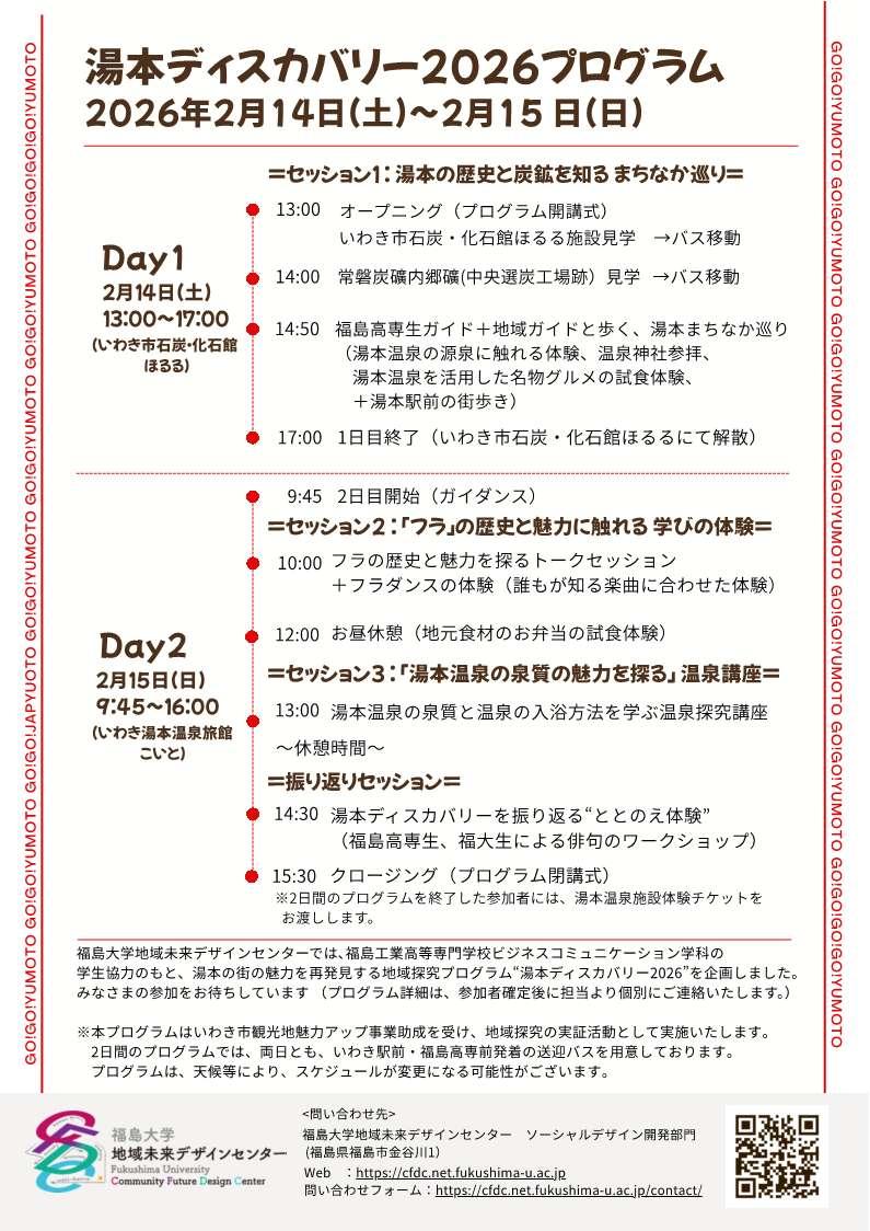 来たる2026年2月14日、15日に湯本地域の魅力を発見する地域探究プログラム"湯本ディスカバリー2026"を開催することになりました。